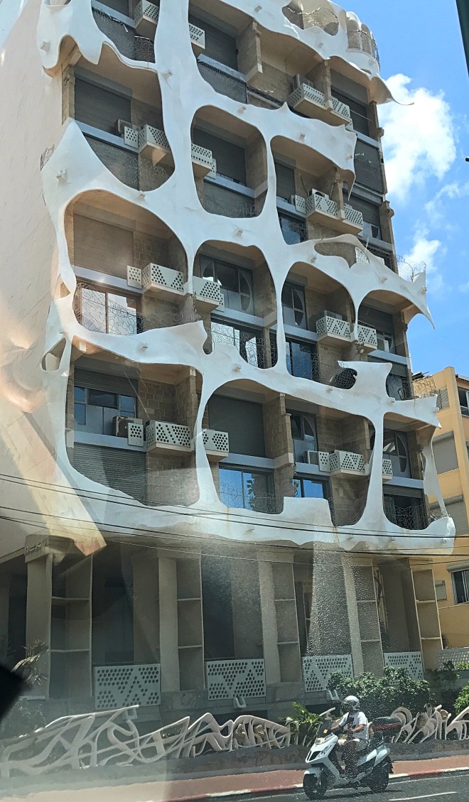 Departing from the subject of good citizenry and buffed bodies, I’ll move on to buildings. Being a lover of architecture, particularly art deco, mid-century and modernistic design, I was thrilled to find so many buildings in Tel Aviv designed in the Bauhaus style. For the uninformed, Bauhaus was a German art school operational from 1919 to 1933 that combined crafts and the fine arts—later becoming one of the most influential currents in modern design. The Bauhaus had a profound influence upon subsequent developments in art, architecture, graphic design, interior design, industrial design and even typography.