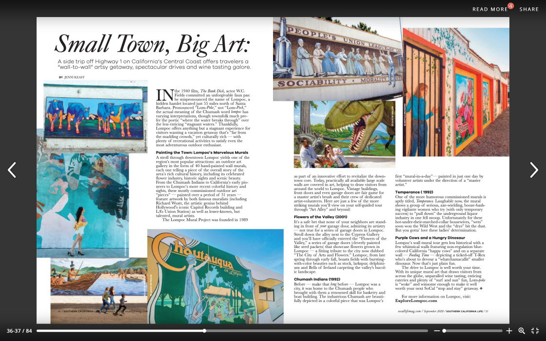 Small Town, Big Art: A side trip off Highway 1 on California’s Central Coast offers travelers a “wall to wall” artsy getaway, spectacular drives and wine tasting galore.